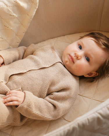 First off, we recommend the waterproof mattress protector, because little accidents can always happen and it’s nice to know that no matter what your cradle won’t be ruined, and to round off the look, why not add a fitted sheet to make your baby’s sleep space even cozier. We also love to recommend adding the heaven canopy to your cradle to reduce ambient light and minimize sleep disturbances, as well as an added layer of safety with the Mattress Fixi that keeps your little one lying snug and centered on the mattress.